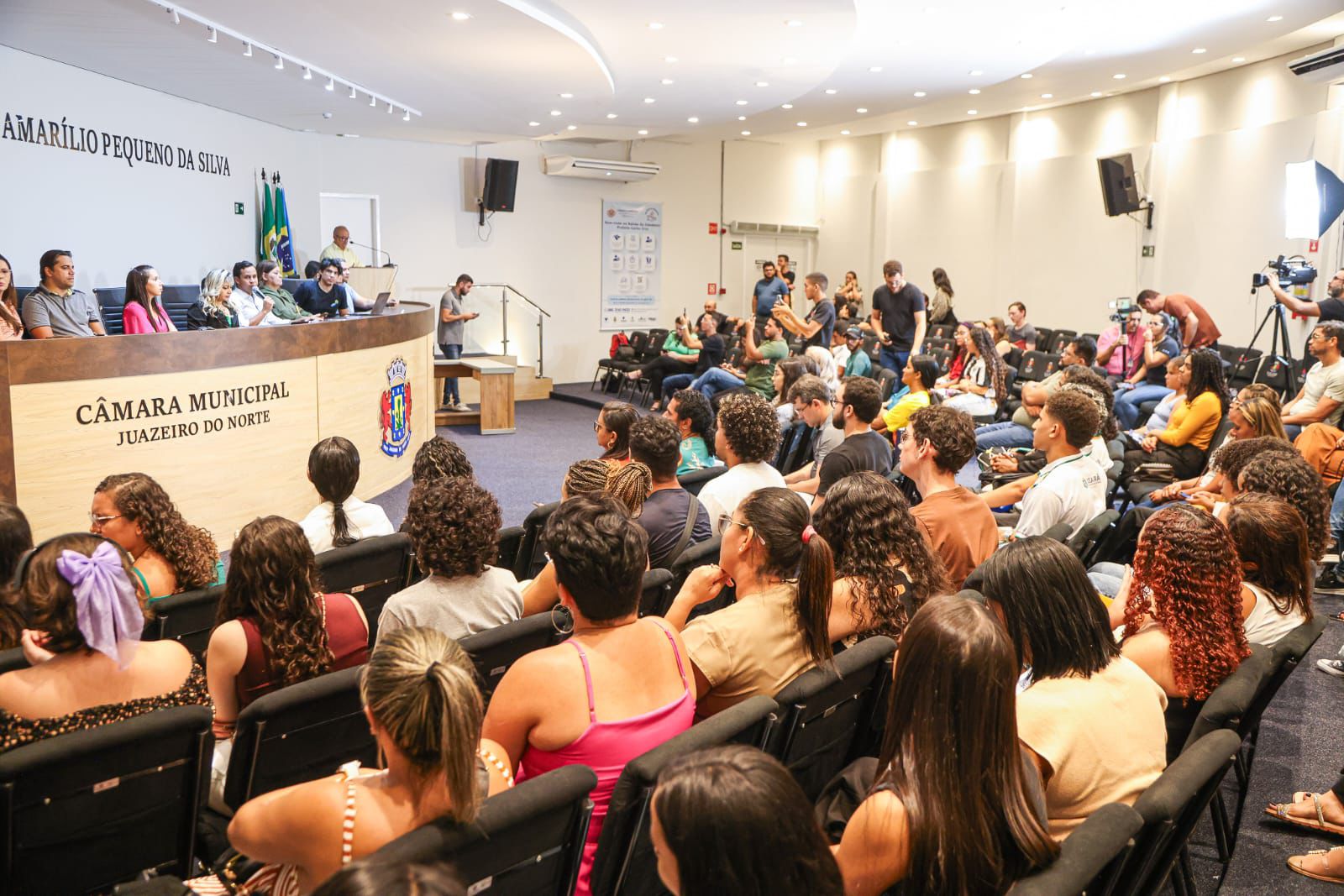A Câmara Municipal de Juazeiro do Norte, em parceria com o Instituto Vygostski de Educação, Cultura e Saúde (IVECS), realizou nesta segunda-feira (08), no Auditório Vereador Amarílio Pequeno da Silva, a aula inaugural do Capacita Juazeiro, projeto inédito que oferece formação e qualificação para jovens e adultos em situação de vulnerabilidade social ou de baixa renda. Nesta primeira etapa, foram iniciadas as turmas dos cursos de Libras, Primeiros Socorros e Atendimento ao Cliente, cada um com 200 vagas, totalizando 600 oportunidades de capacitação.