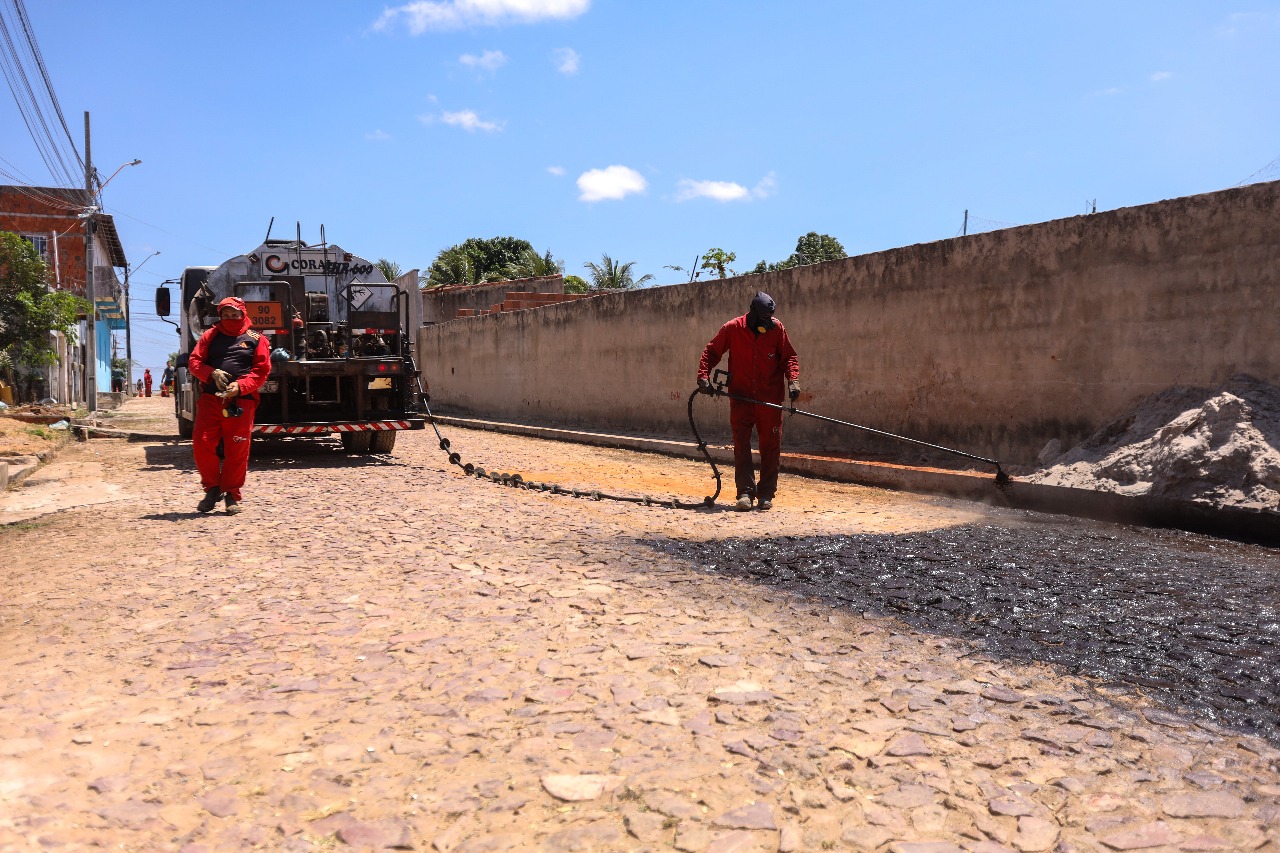 Nesta segunda-feira, 17, os serviços de pavimentação asfáltica se concentraram nas ruas Francisco Vicente e João Maciel.