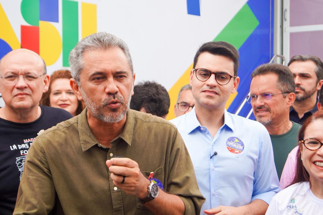 Durante visita a Juazeiro do Norte, o governador Elmano de Freitas (PT), acompanhado de representantes do Ministério da Saúde e lideranças políticas do estado, participou da chegada inédita da carreta do programa “Agora Tem Especialistas” ao município.