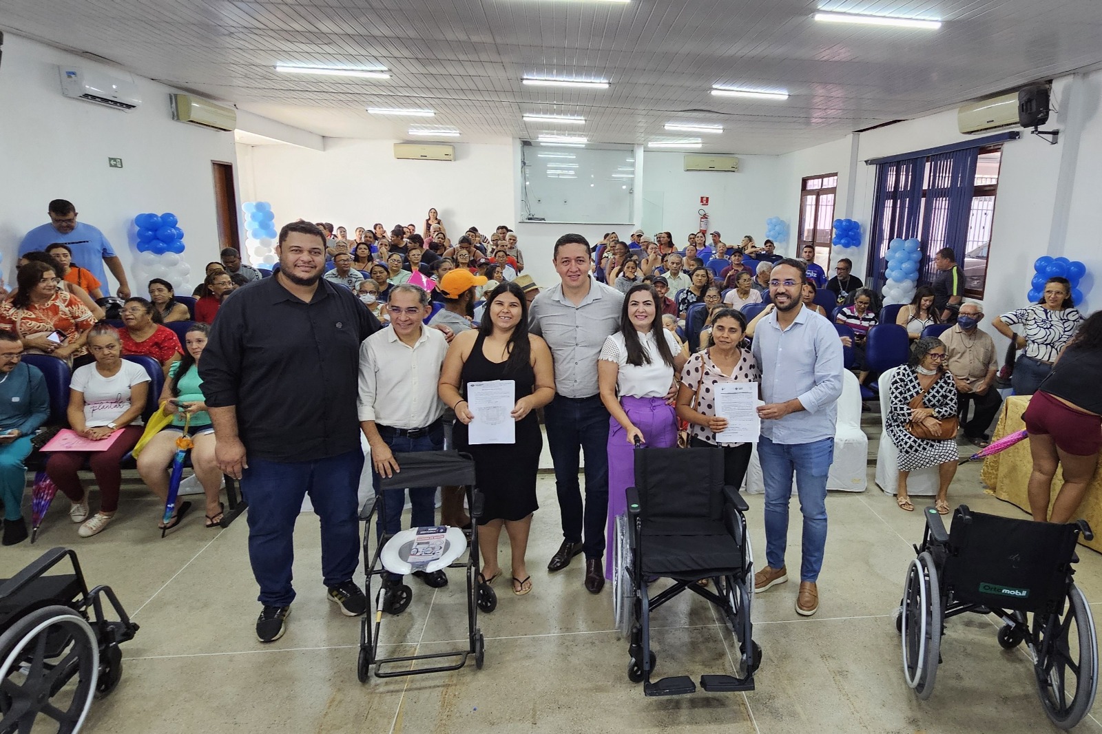 Aconteceu, na manhã desta quarta-feira, 11, a entrega de equipamentos como cadeiras de rodas (comum e de banho), aparelhos auditivos e óculos, realizada pelo setor de Órteses e Próteses da Secretaria de Saúde (Sesau), no Centro de Referência ao Trabalhador.