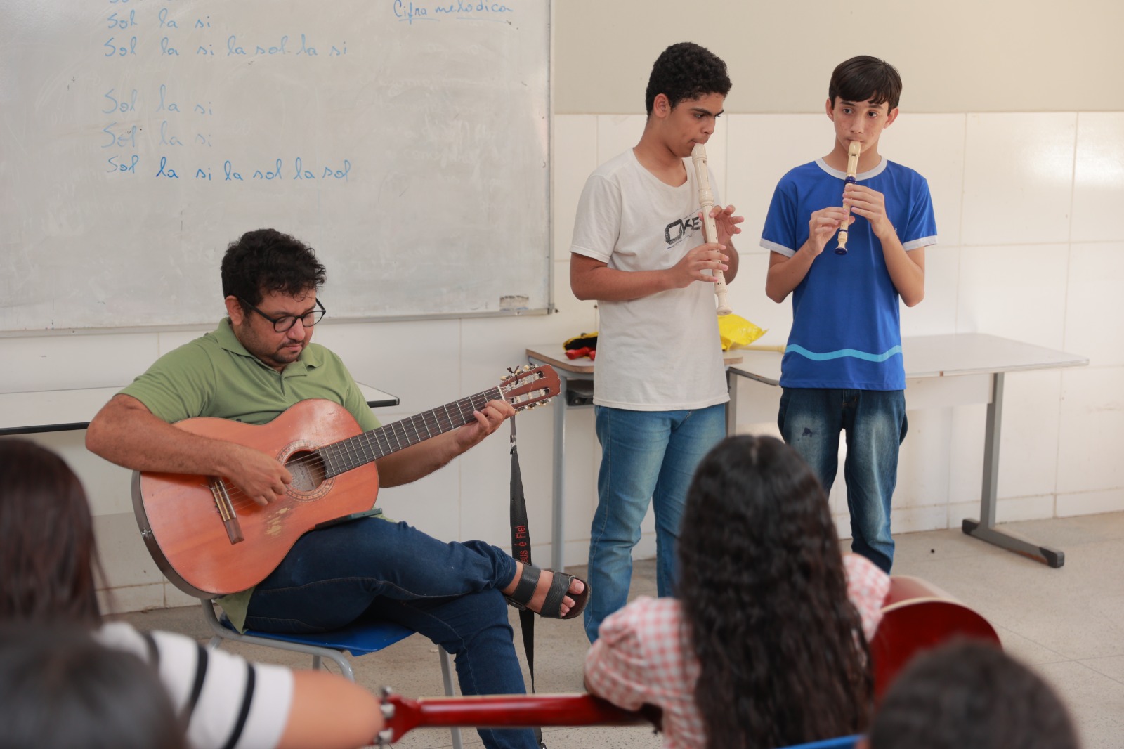 Criado em agosto de 2024, o projeto começou com aulas de flauta e, atualmente, também oferece aulas de violão. As atividades acontecem nas tardes de quarta-feira e buscam proporcionar aos estudantes uma experiência prática com a música, estimulando o aprendizado por meio da vivência artística e do contato direto com os instrumentos.