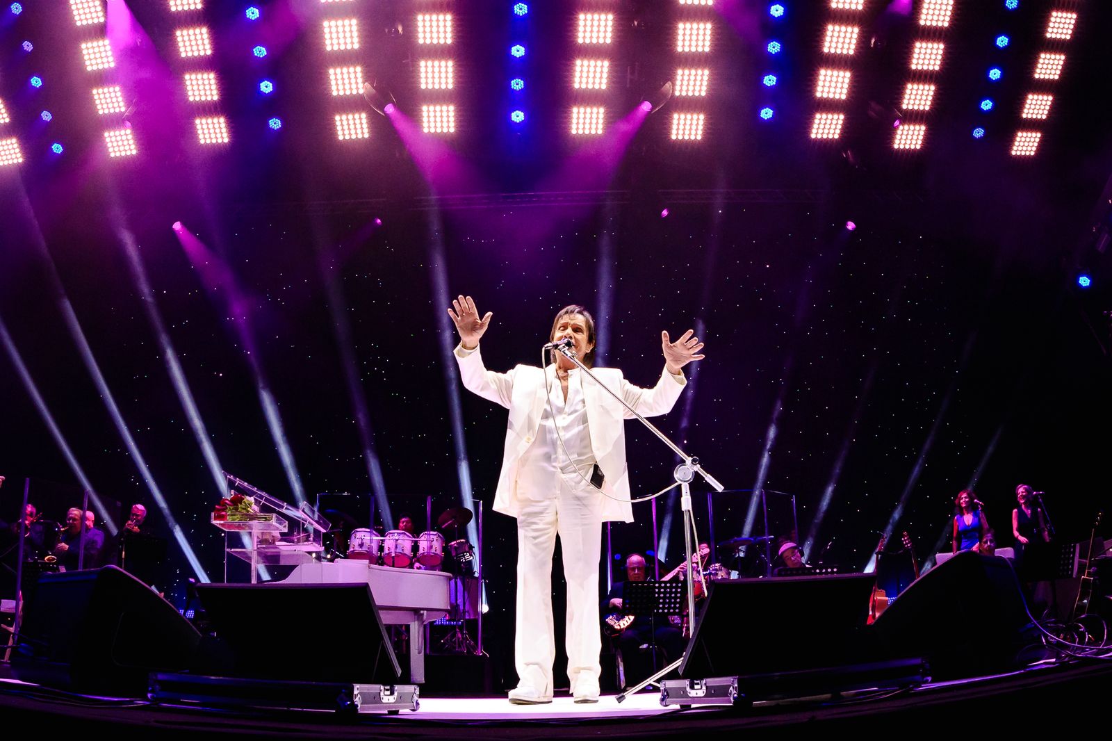 O cantor de 84 anos subiu ao palco do Parque de Exposições Pedro Felício Cavalcante diante de uma multidão que acompanhou, em coro, sucessos como Emoções, Detalhes e Esse Cara Sou Eu.