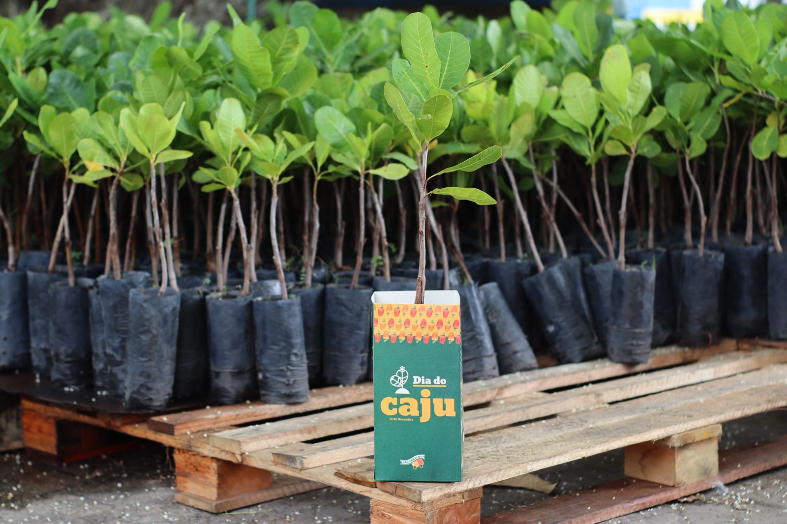 As mudas distribuídas são de Cajueiro Anão Precoce, espécie que alcança até três metros de altura e é ideal para quem deseja plantar em espaços menores.