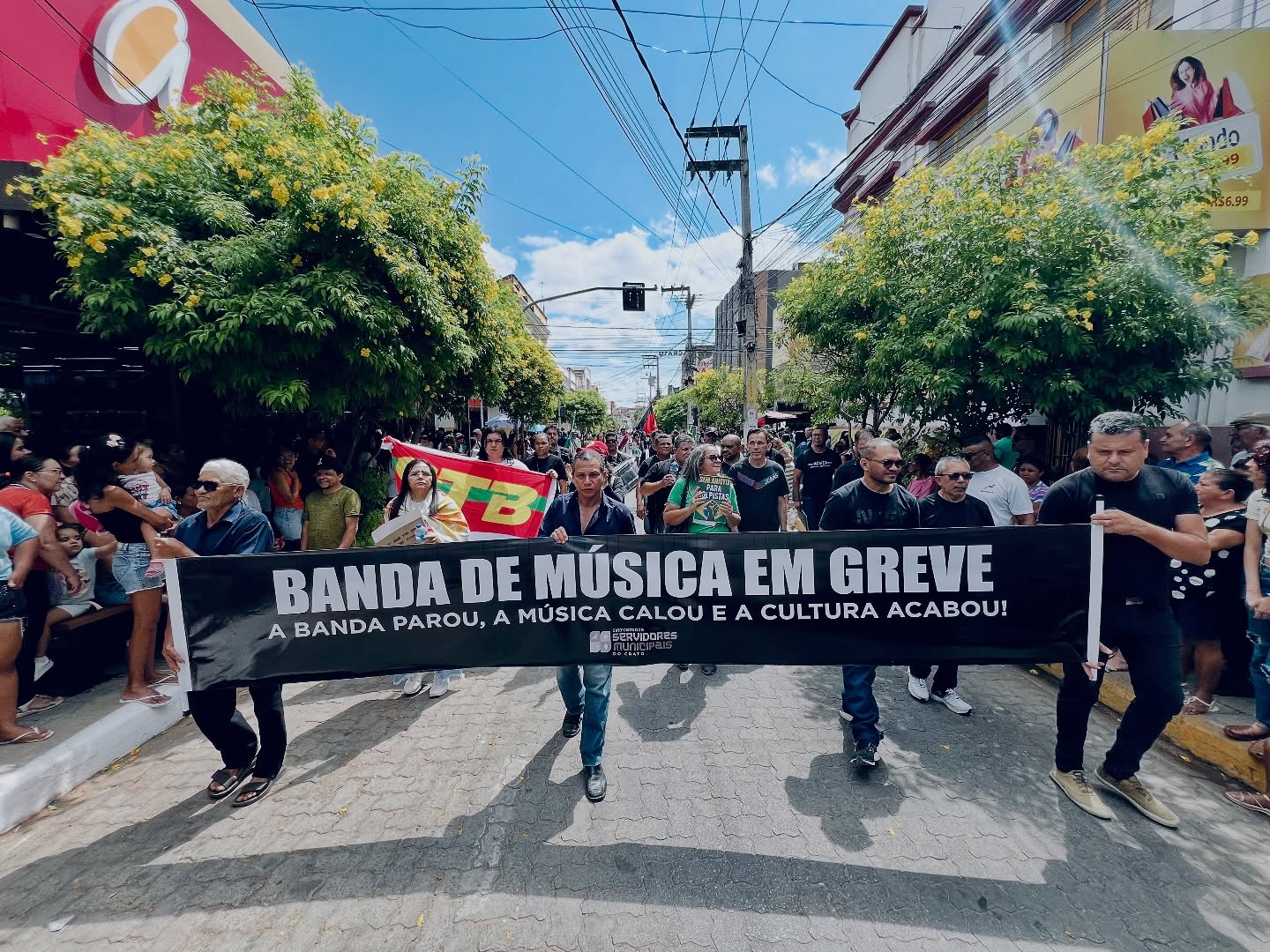 A tradicional banda de música do Crato, patrimônio cultural e orgulho do povo cratense, enfrenta um dos períodos mais críticos de sua história. Após o corte dos salários por parte da Prefeitura, os músicos entraram em greve e agora recorrem à solidariedade da população para garantir comida na mesa.